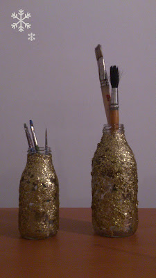 Decidi que seriam uns suportes engraçados para colocar os meus pincéis e ficaram com um ar natalício devido às purpurinas douradas!